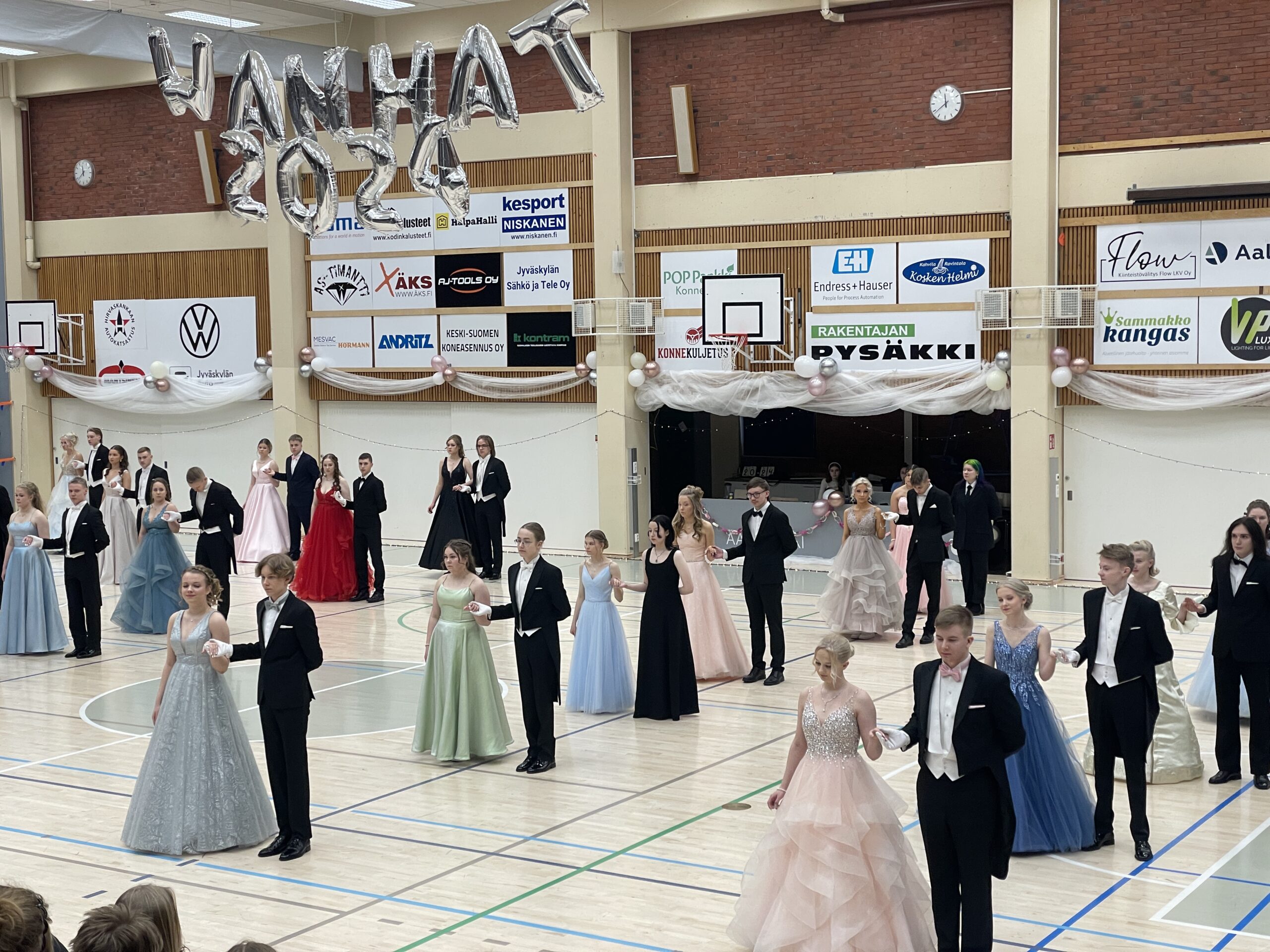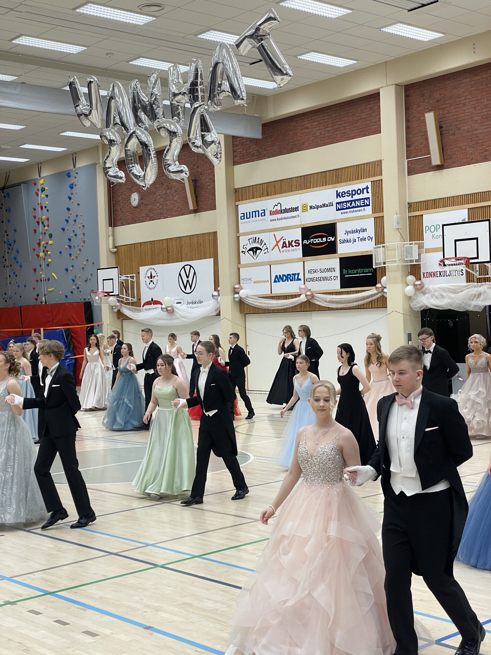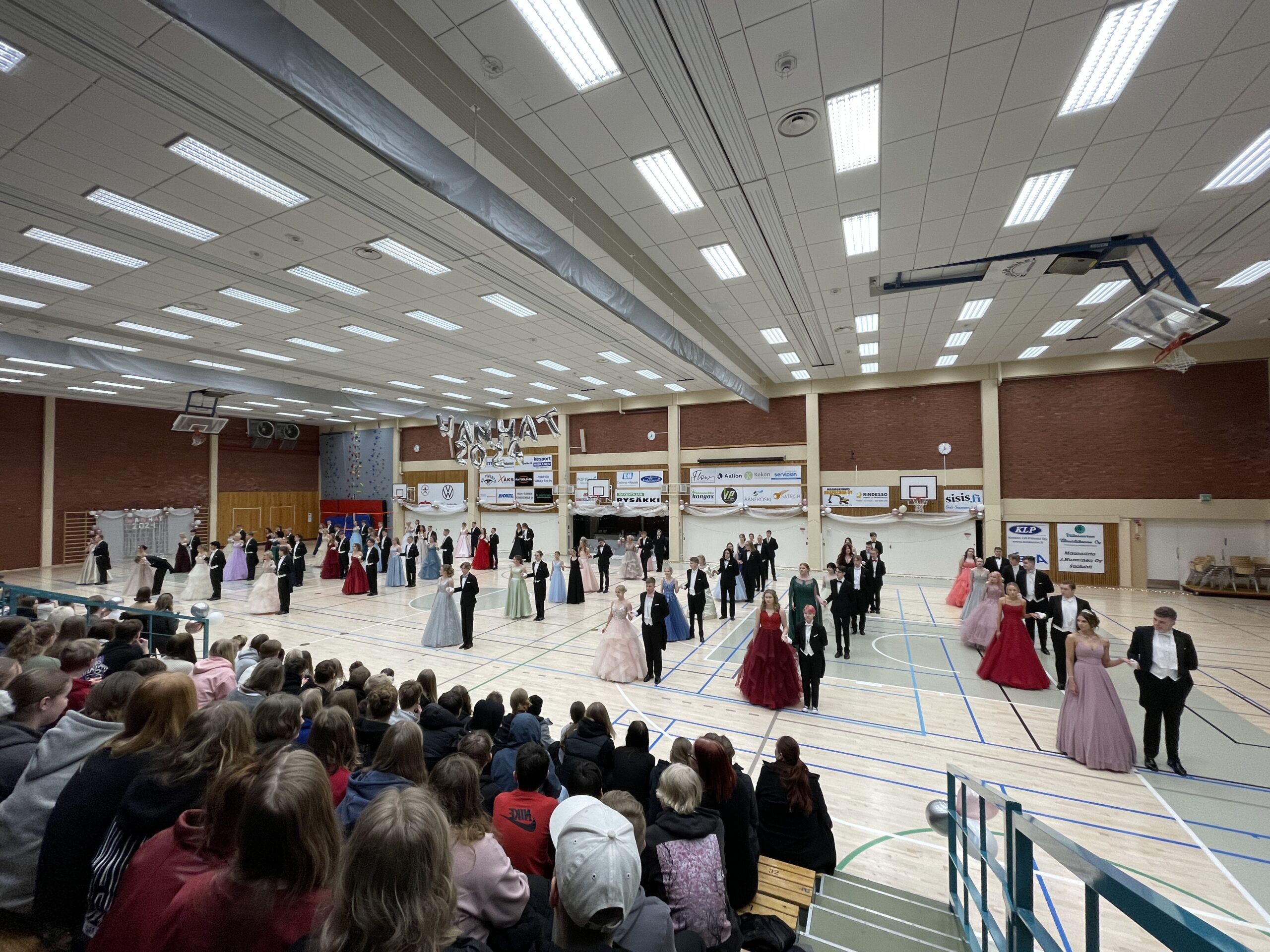 Äänekosken liikuntatalo muuntautui tanssisaliksi, kun lukion kakkoset pistivät jalalla koreasti vanhojen tansseista tuttujen klassikoiden tahtiin. Odotetuin hetki on tietenkin oma tanssi, joka syntyi yhteistyöllä, yhteisten ideoiden myötä.