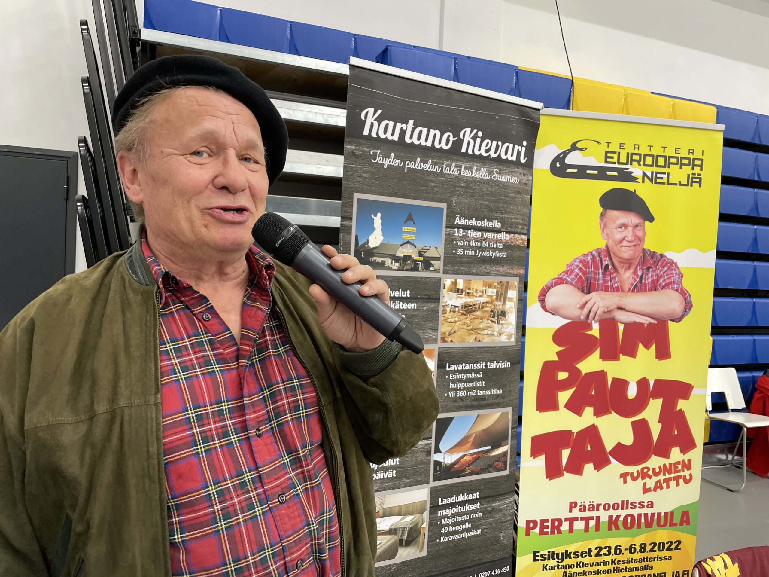 - Pertti Koivula lauloi niin että polvet notkahti. Koivula mainostaa samalla Kievarin kesäteatterin Simpauttajaa. Hojo hojo!