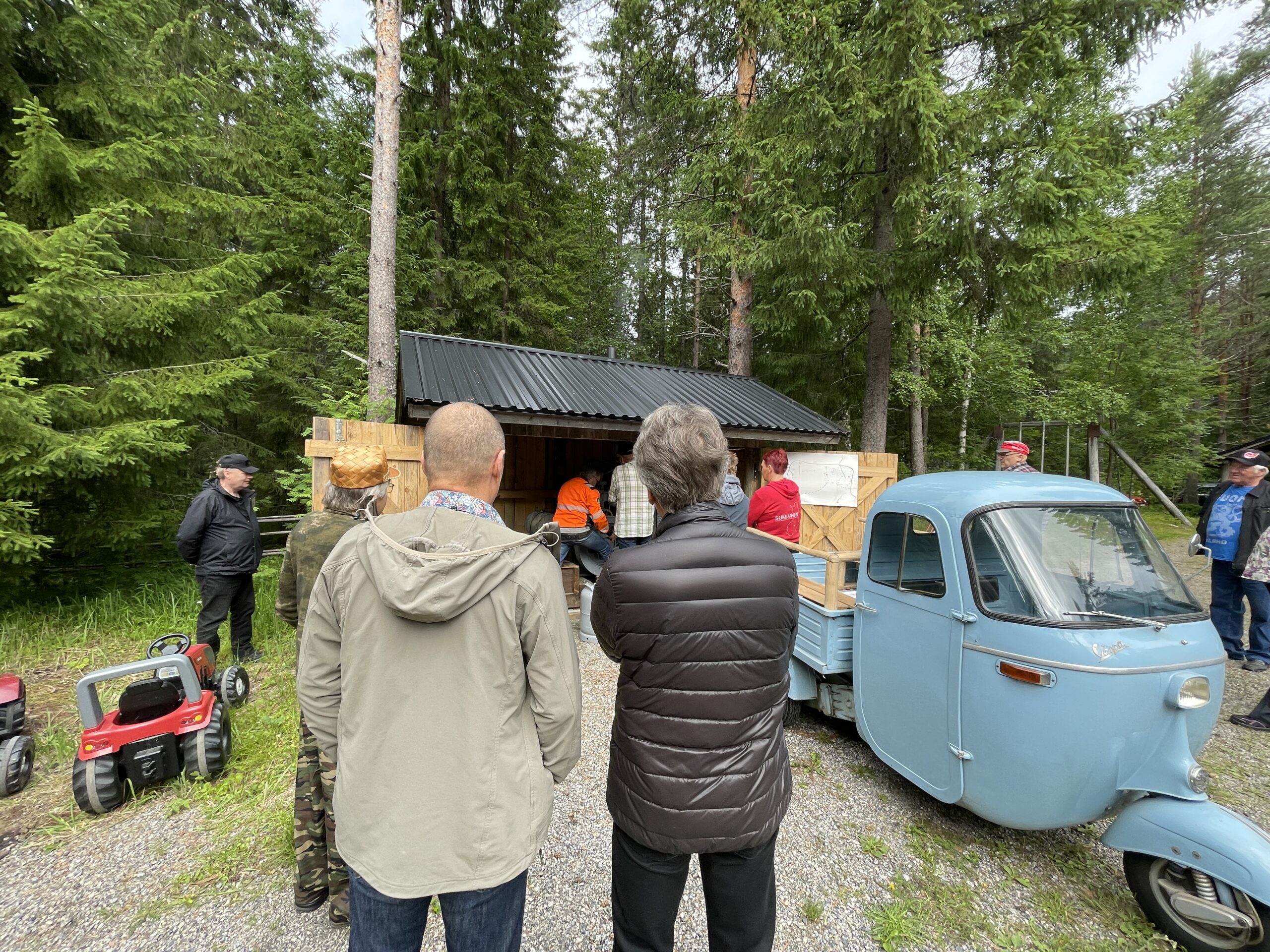 Veikon Museolla oli myös pannu sekä vohvelipannu kuumana. Makkarakin maistui. Veikko Pellinen esitteli museonsa vehkeitä, ja niissä riittää katseltavaa.