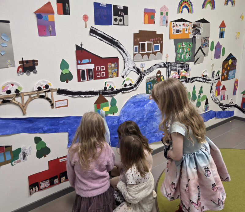 – Lasten teoksissa nähdään paljon pieniä havaintoja ja yksityiskohtia kuvatuissa rakennuksissa ja paikoissa. Ympäristön siirtäminen karttamuotoon vaatii myös matemaattista hahmottamista. Lasten uteliaisuus omaa ympäristöään kohtaan ja innokkuus näkyvät selvästi, päiväkodin johtaja Mia Irtamo kertoo.