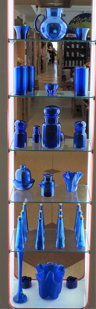 - Siniset lasitavarat on laitettu sinisten lasitavaroiden hyllyyn.