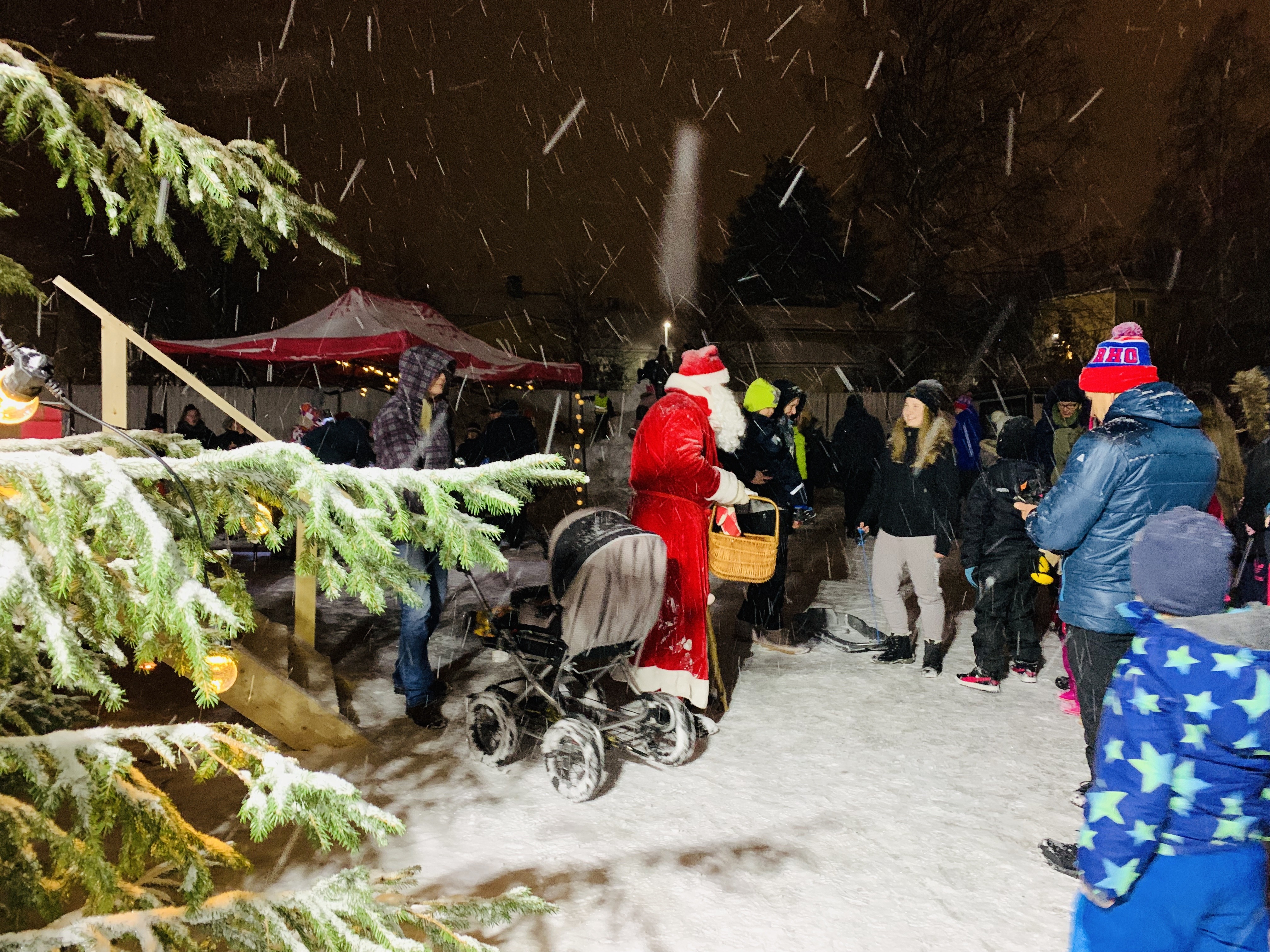 Uudelta asemalta lähtenyttä Joulupukin kulkuetta johti upea, punaloiminen heppa, ja Joulupukki vilkutteli toisen hevosen vetämissä kärryissä. Kulkueeseen osallistui arviolta lähes 200 henkeä.