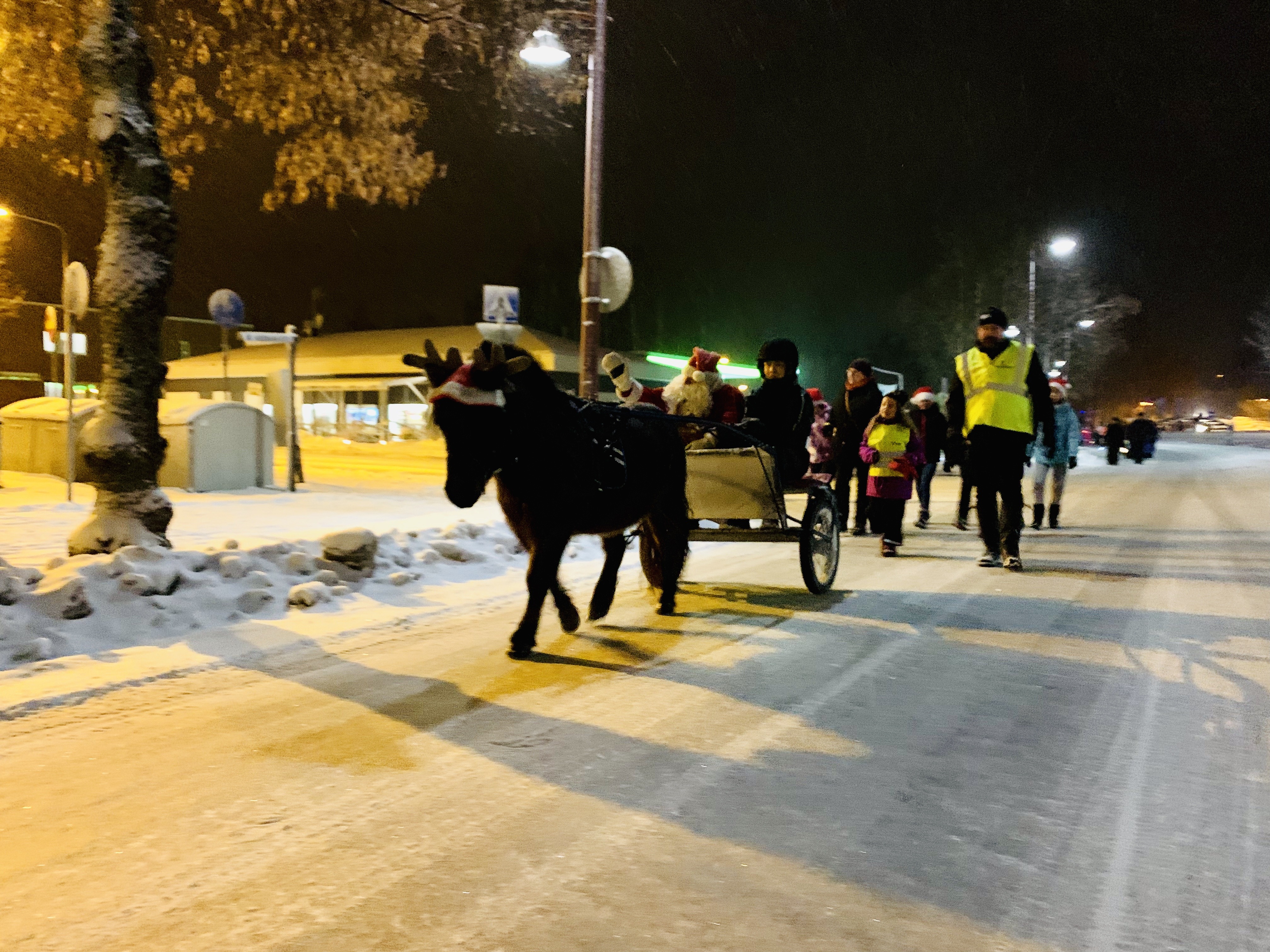 - Joulupukin kulkue oli pitkä.